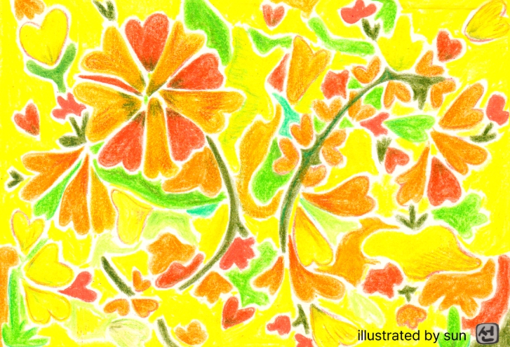정해진 모양 없이 그저 끄적이는 시간이 좋다. 손이 이끄는 대로 아무 생각 없이 선을 긋다 보면, 보이는 모든 색을 꺼내어 천천히 칠하고, 선을 그리고 색을 입히고