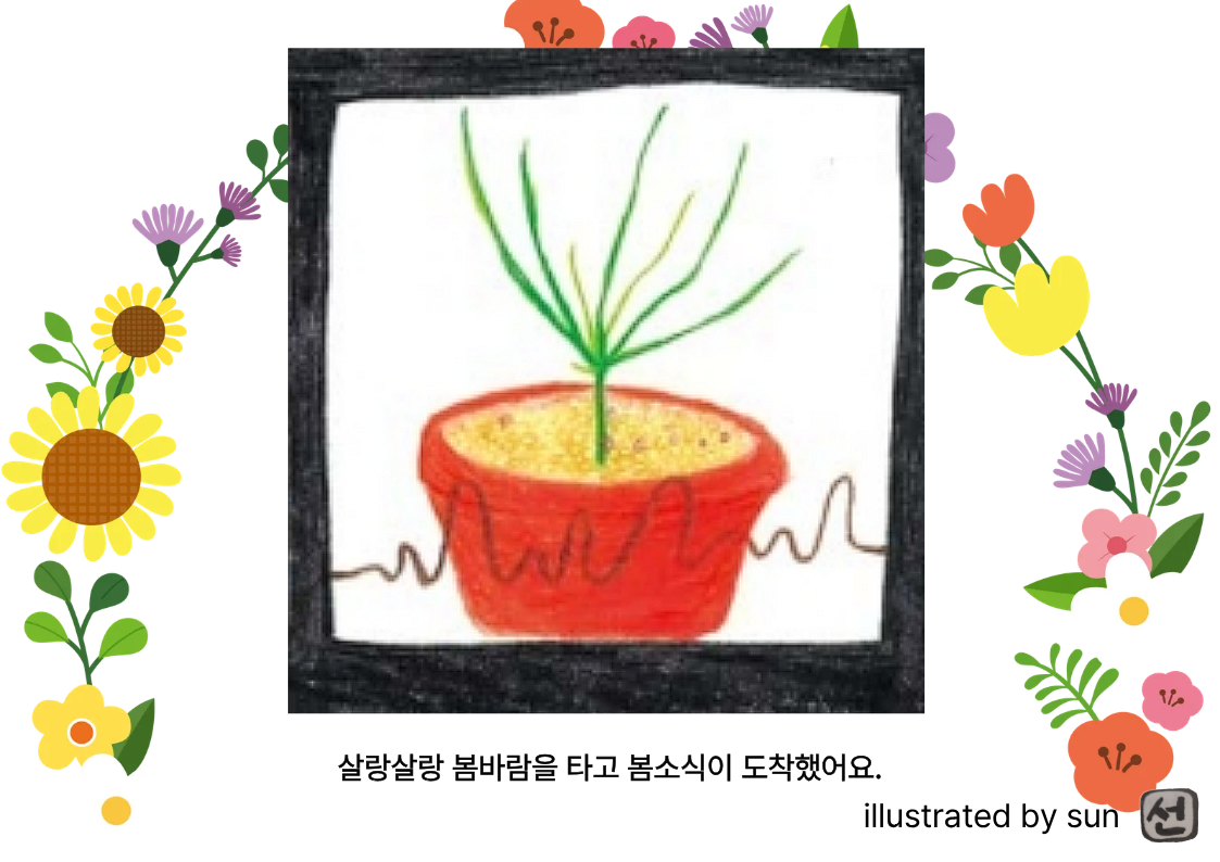 살랑이는 봄바람을 타고 조용하게 새싹이 솟구쳐 오르는 순간을 꿈꾸고 있다.